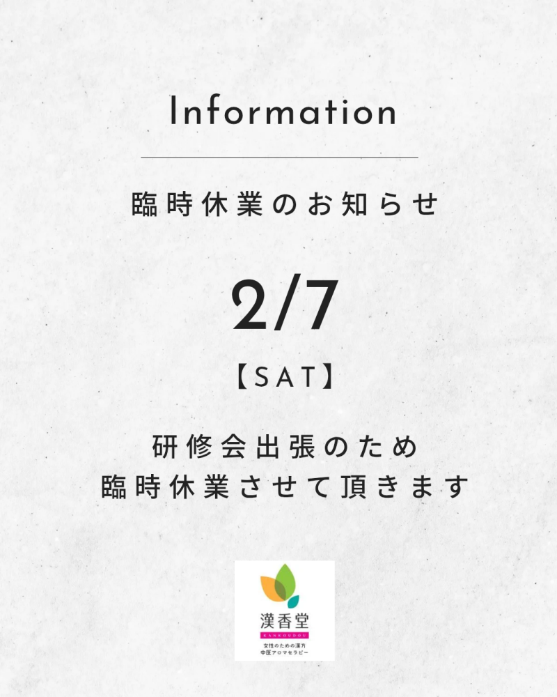公式LINEではお伝えしていましたが、2/7(土)は研修会出張の為、臨時休業させて頂きます。